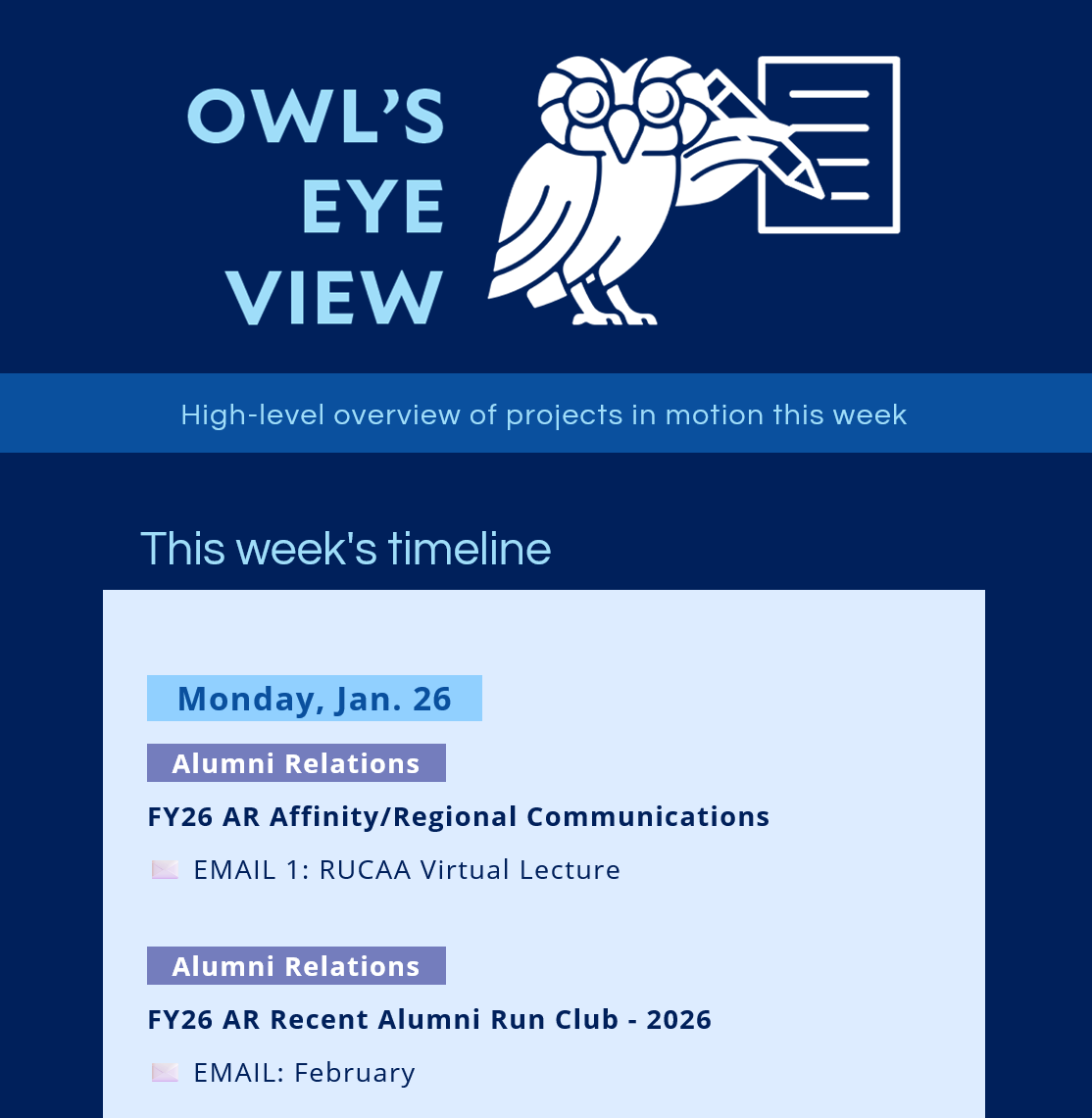 I currently work at Rice University supporting solicitation, engagement, and stewardship email campaigns, where I spend most of my time improving the systems behind the work.
