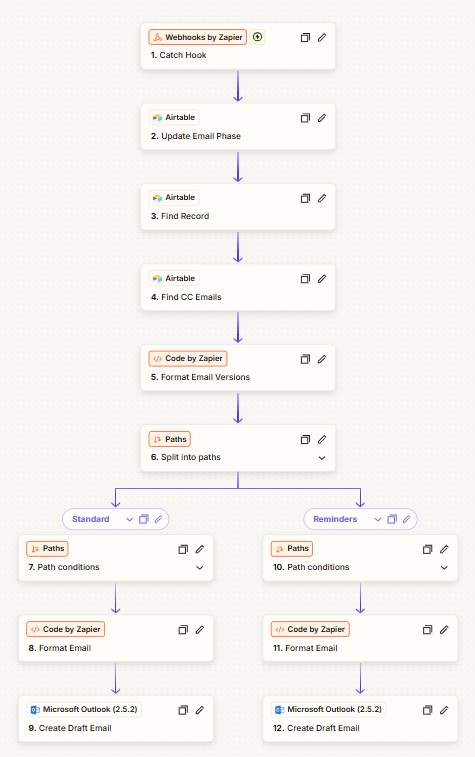 Emails could go down one of two paths: Standard and Reminders, but this is just for email formatting purposes, the content of the email is essentially the exact same.